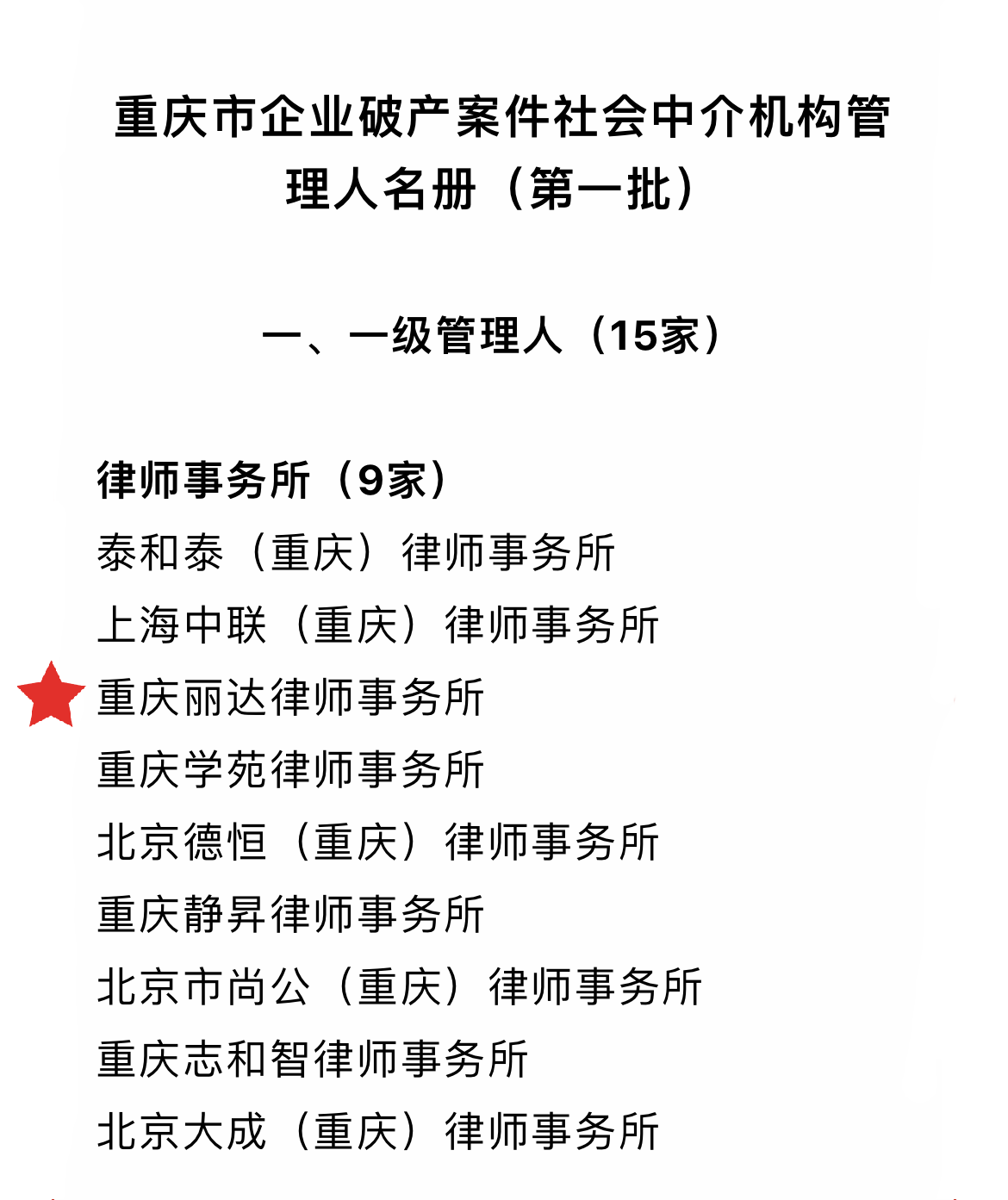 丽达动态丨我所入选重庆市企业破产案件一级管理人名册