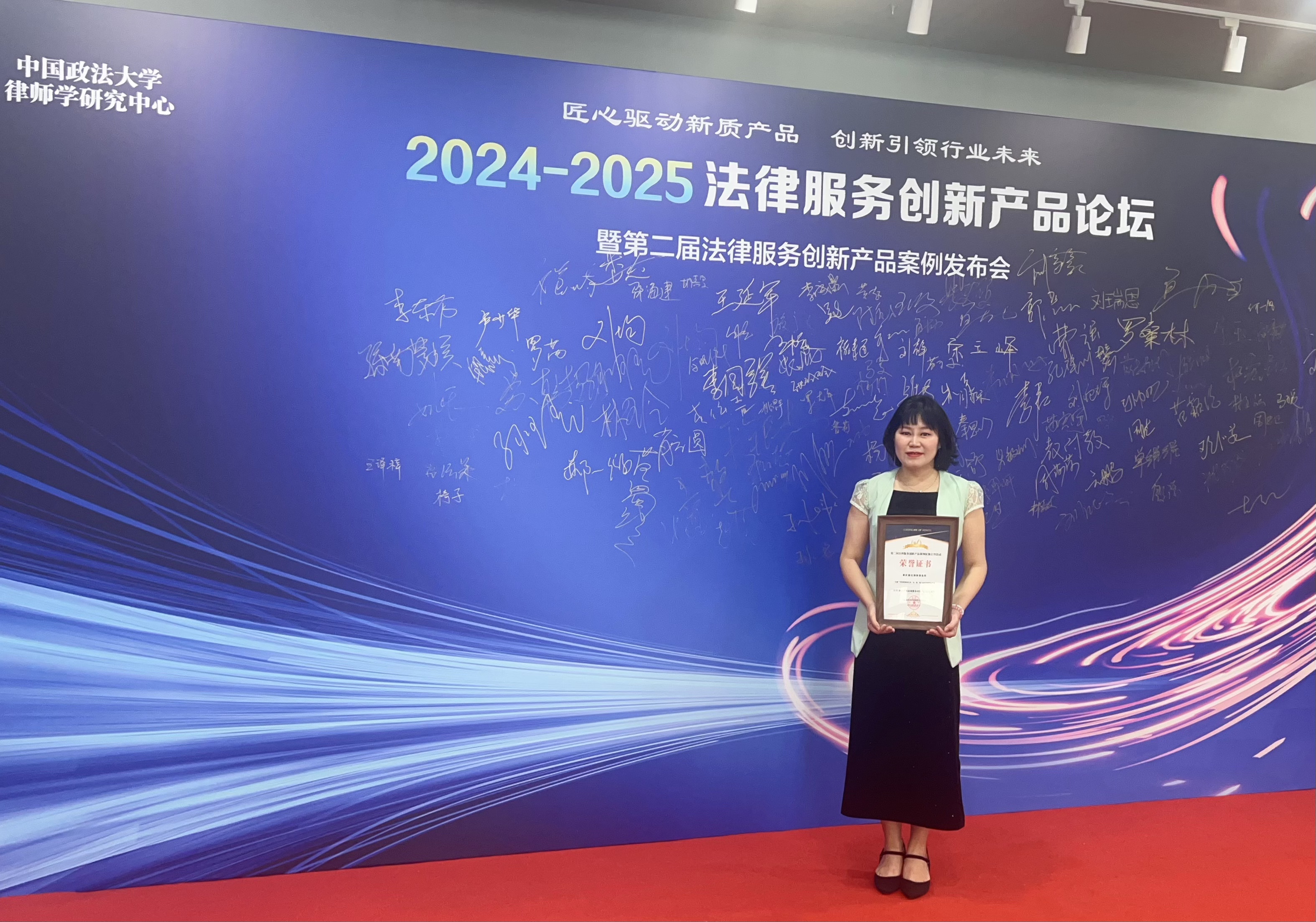为深入挖掘律师行业在法律服务产品领域的创新实践,评选出具有示范价值的优秀服务产品案例,推动传播法律服务的创新先进模式。6月29日,2024-2025法律服务创新产品论坛暨第二届案例发布会在北京胜利闭幕。论坛以“匠心驱动新质产品,创新引领行业未来”为主题,全国法律行业精英、专家学者齐聚一堂,我所管委会主任张璐受邀参加论坛。